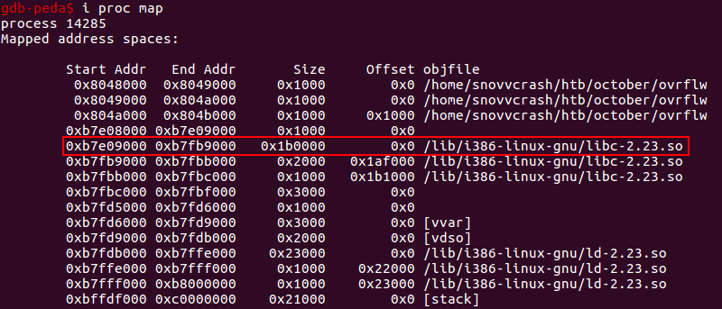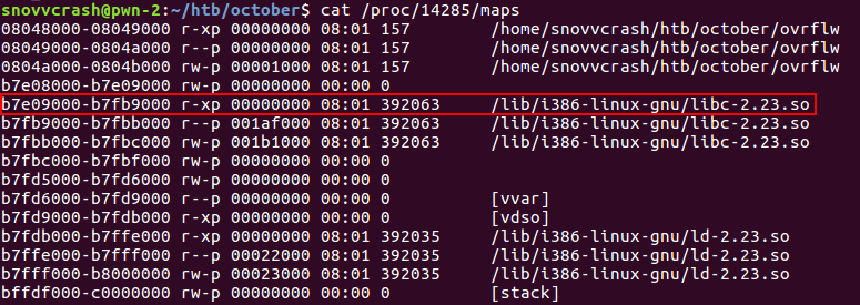 Эти же данные можно получить из файла /proc/<ovrflw_PID>/maps.