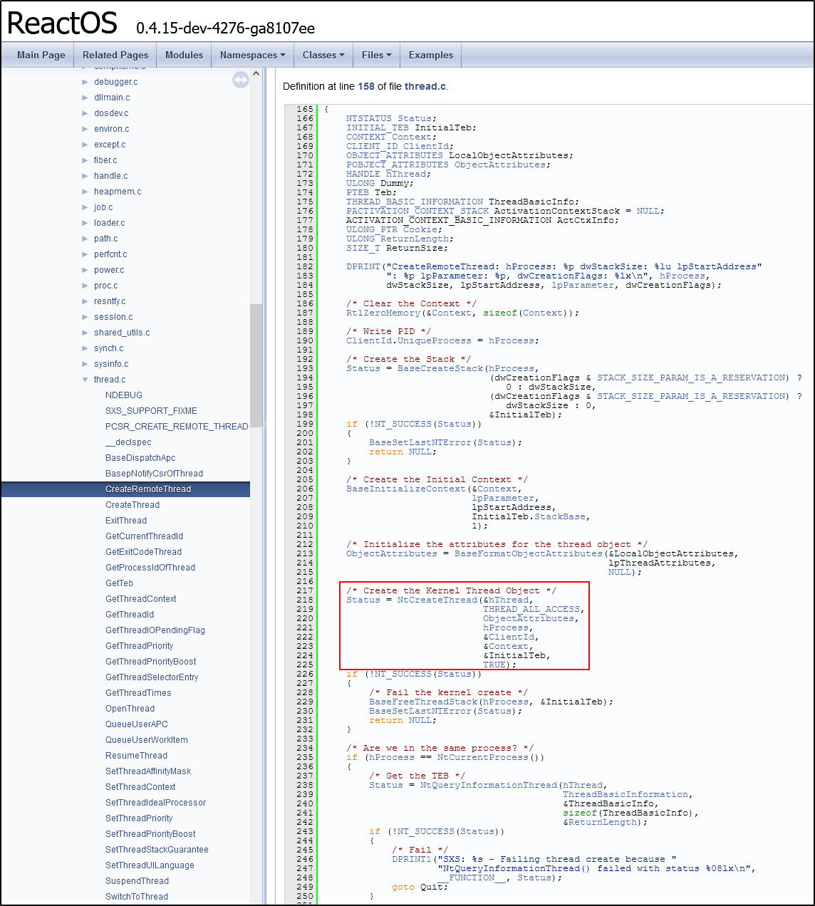 Например, в реализации функции CreateRemoteThread есть недвусмысленный намек на вызов NtCreateThread, что относит нас к сигнатуре NtCreateThreadEx.