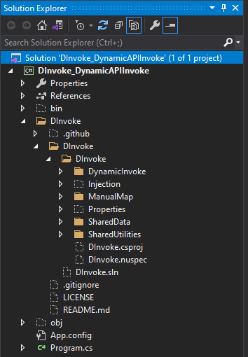 Теперь можно создать бранч syscalls, открыть KeeTheft.sln в Visual Studio и добавить папку DInvoke в проект.