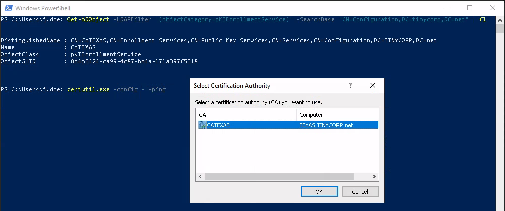 Продемонстрировать со скриншотом, к сожалению, не получится, т. к. в моей лаба сервер TEXAS и выполняет роль AD CS, а reflective-релей с самого себе не сработает.