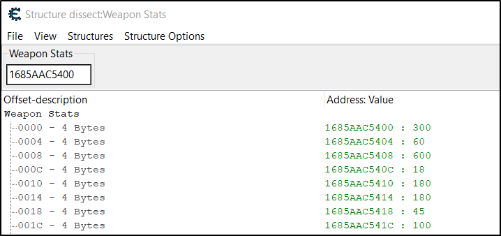 mov ecx,[rax+08].RAXprobably points to a value of a structure with weapons stats. - Shoot!